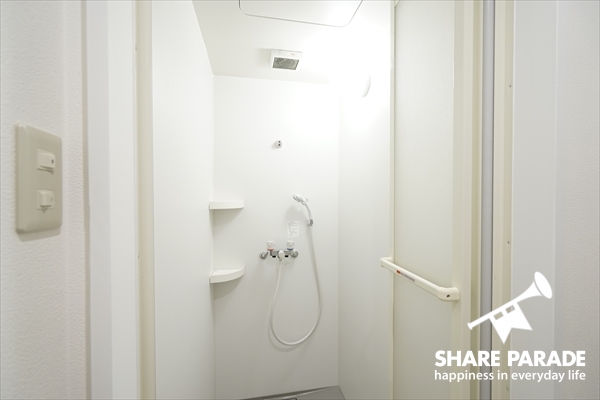 田中「ありがとうございます。シャワールームがこちらです。バスタブはないのですが、近くに銭湯がありますので、湯船に浸かりたいときは、そちらをご利用頂ければと思います。」