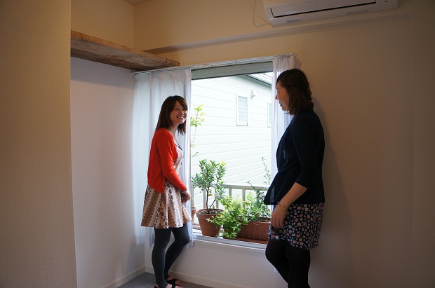 くみこ「お布団干せるね。あと、道路に面してないし、周りも一軒家が多くて、窓を開けたら、隣の家の窓ってこともないから、洗濯物も干せそう。」