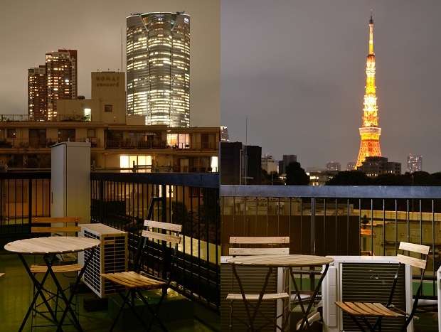 さすがは、ヒルズ裏。6階のバルコニーから、六本木ヒルズと東京タワーの両方が見れちゃうなんて。