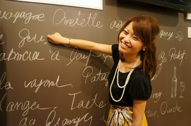しょうこ「こちらの壁はブラックボード仕様になってます!手書きのフランス語の文字がいい味だしてる~」