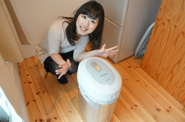 ゆうき「ずばり生ごみ処理機!これで処理した生ごみは、先ほどのプランターに肥料として有効活用しています。エコだね★」