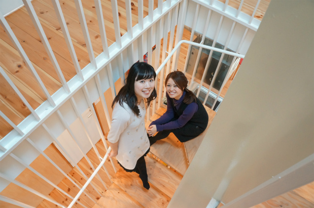 くみこ「なかなか螺旋階段って家ではないから新鮮!やっぱり木のぬくもりが全体に感じられるし、途中のお花が癒しのポイント♪」