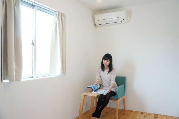 くみこ「全体が木の色で落ち着いてるから、家具の色がPOPに映えて可愛い!窓も多いから光もたくさん入ってくるね。」