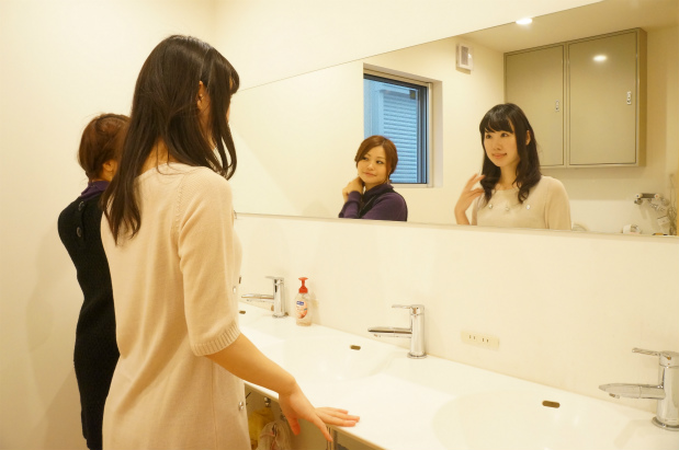くみこ「鏡がつながっていて大きいーー!!!これなら全体がしかり見えていいし、時間がかぶっても邪魔にならないね!」