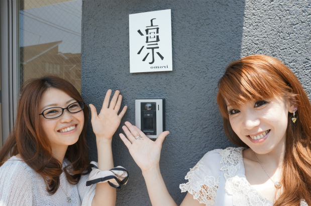 まり「凛omoriさんです!外観はシックですごく大人なな感じだね♪」
