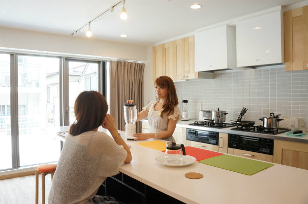 まり「広いキッチンだから、友達同士で料理を作ったり教えあったりしたら楽しいかも♪」