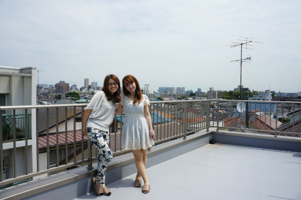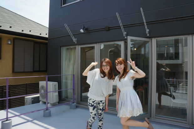 まり「3Fのテラスです♪周りに、高い建物がないから、気持ちいい♪洗濯物すぐ乾きそうー!」