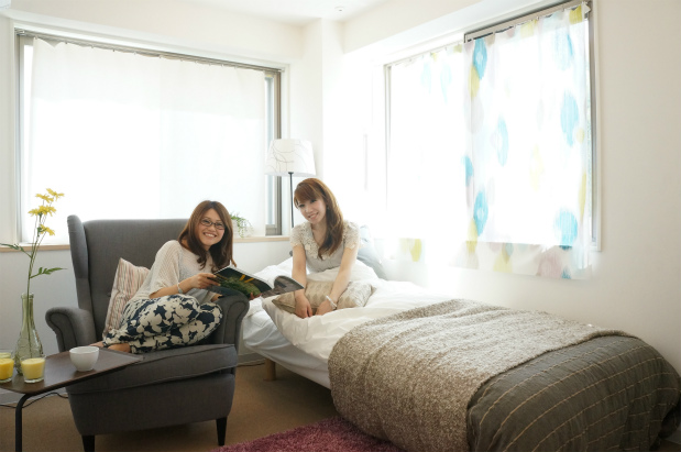 まり「友達と気兼ねなく、朝まで自分の部屋で女子トークをしてもいいかも♪ベッドとソファーは新品だから、気持ちいい~!」