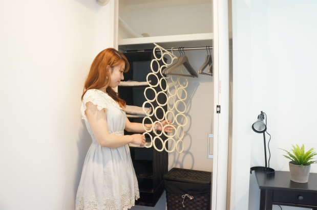 まり「クローゼットの中に、こうゆうのを入れるだけで、物がたくさんかけれます♪改造しようと思えば思うほど、いろいろアイディアがうまれてくるよ♪」