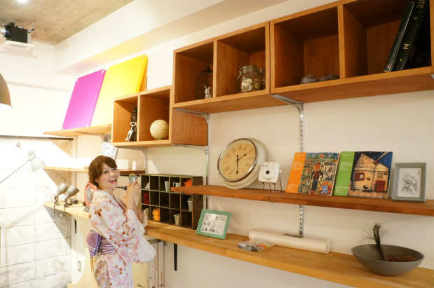 くみこ「絵本が置いてあったり、小物があったり、かわいい♪いろいろな色のデスク、今日は何色にしよう~。」