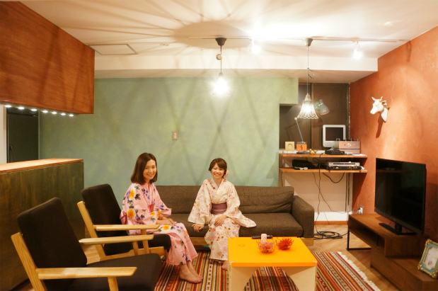あや「照明と壁がマッチしてるね!ソファーもふかふかしててくつろぐー!」