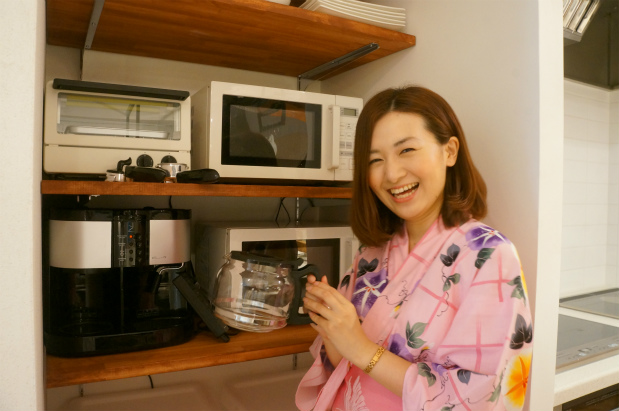 あや「コーヒーメーカーやレンジまで家電もしっかり揃っています!」