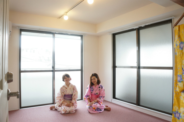 くみこ「こちらはピンクの絨毯です~。家具が置きやすそうだね。角部屋は窓が大きくて、必見!」