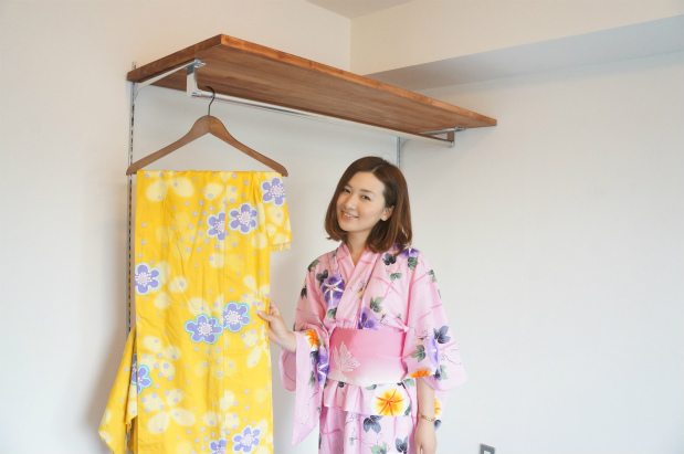 くみこ「ポールハンガーの上には棚があるから、ちょっとした物も置けて、すっきりするね!」