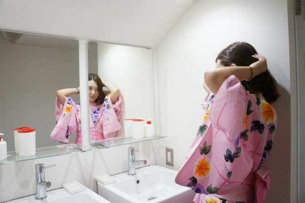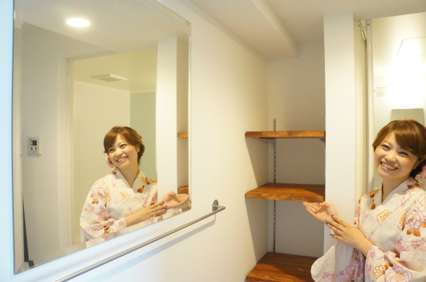 くみこ「脱衣所の棚ってかなり重宝!広く使えるし、鏡があって便利ね。」