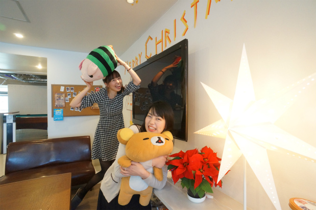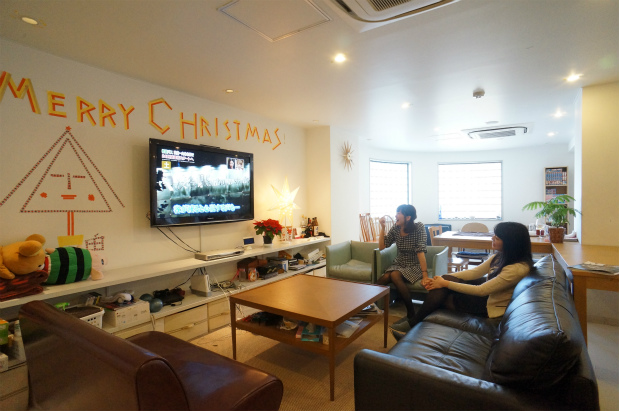 ありす「リビングに入ると、一気にアットホームな温かみのある雰囲気に♪クリスマス前にお邪魔したので、壁にMerryChristmasの飾りつけがされてました!ちょっと前はハロウィン仕様だったそうで、シェアメイトさんたちの仲良しな雰囲気が伺えますね♪」