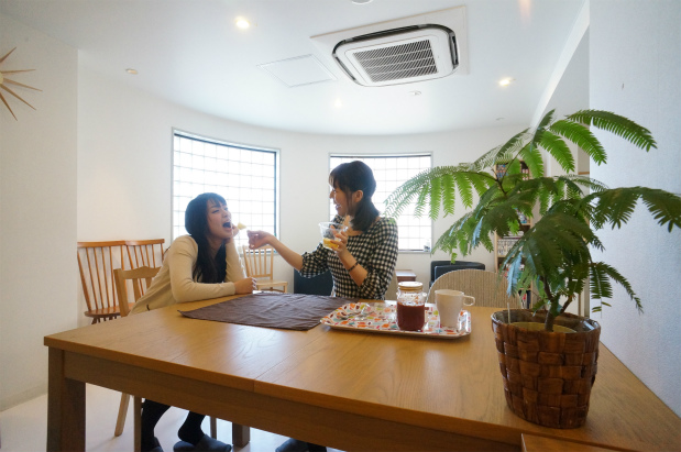 ありす「リビングもすごく広いです~◎このテーブルで雑誌を読んだり、ごはんを食べたり。くつろげますね!」