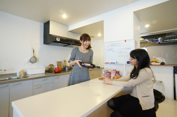 ひとみ「まぁまぁ、ワインでもどうぞ♪キッチンとカウンターのスペースが広くてゆったりしてるところがいいなぁ。」