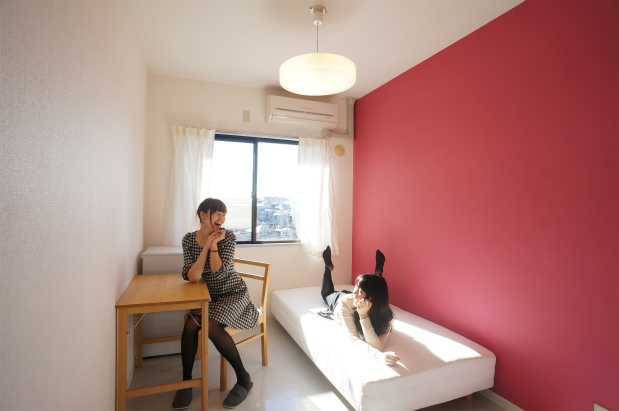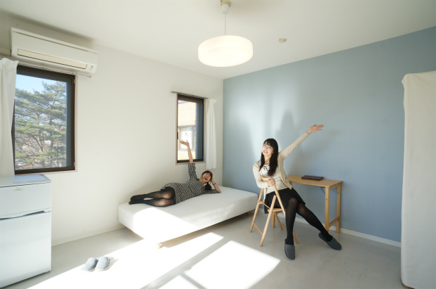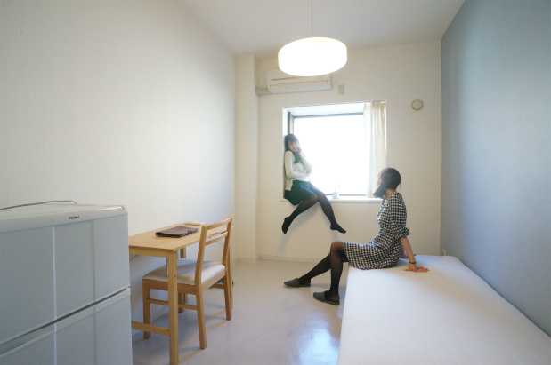 ひとみ「わぁー、フィンランドの美術館みたい!クールでかっこいいね☆冷蔵庫が置いてあるなんて嬉しい~!もちろんベッドも机もイスも備え付けです。」