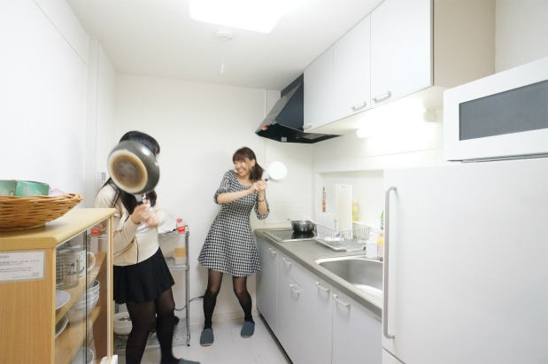 ありす「こちらの棟のキッチンも食器・調理器具が完備!たまご焼きか目玉焼きかでもめちゃいました(笑)わたしはたまご焼き派ですよ!」