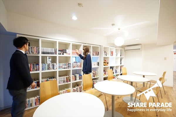 横田「管理会社の方で、ブックシェルフだけ用意致しました。ここに置かれている本や漫画はすべて入居者のものです。」