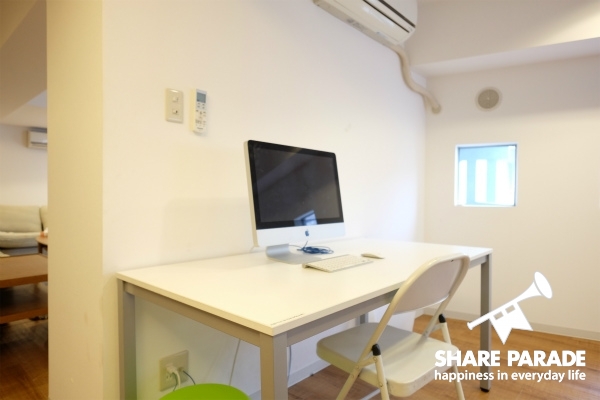 横田「共用部に、みんなが使用できるPC(マック)を用意しています。」