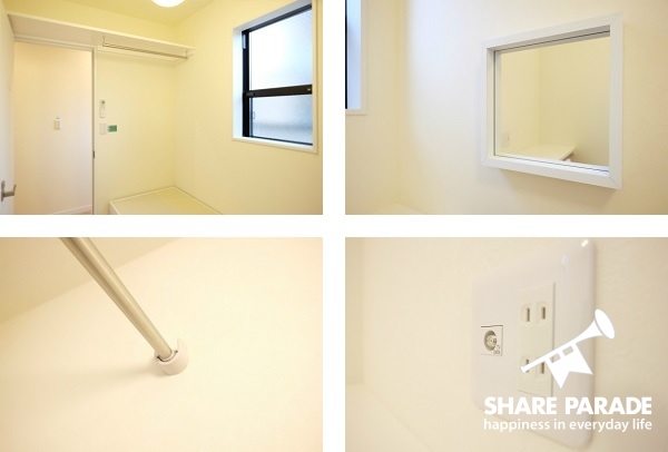 写真左下:ポールがあるので、部屋干しも出来ます。