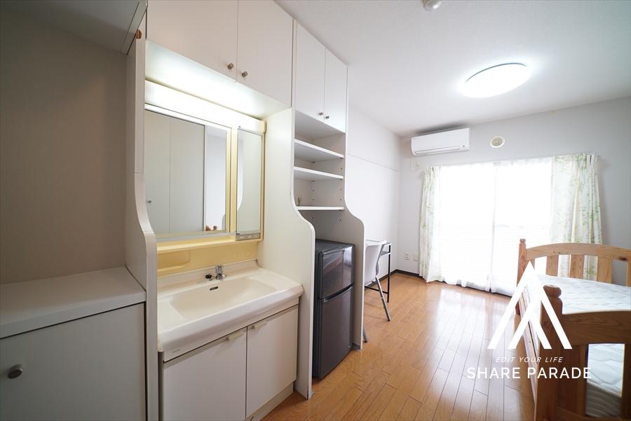 個室鍵/エアコン/収納/マットレス付きベッド/照明器具/網戸/冷蔵庫/デスク/チェア/カーテン/無線WIFI