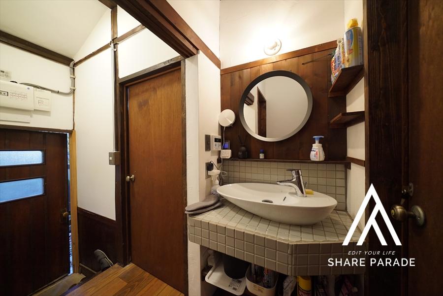 みさき「洗面も渋めの色合いのタイル貼りが、この建物の雰囲気に合っていますね。」