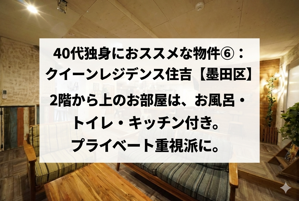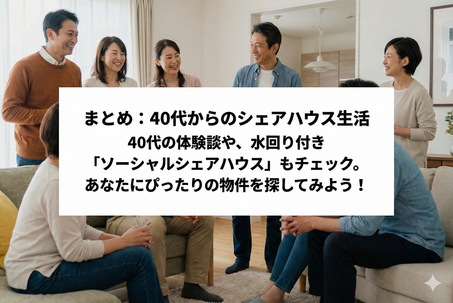 40代の方で、どんなシェアハウスを選べばいいのかはこちらのインタビュー記事【40代でもシェアハウスで過ごしていい!?】を参考ください。