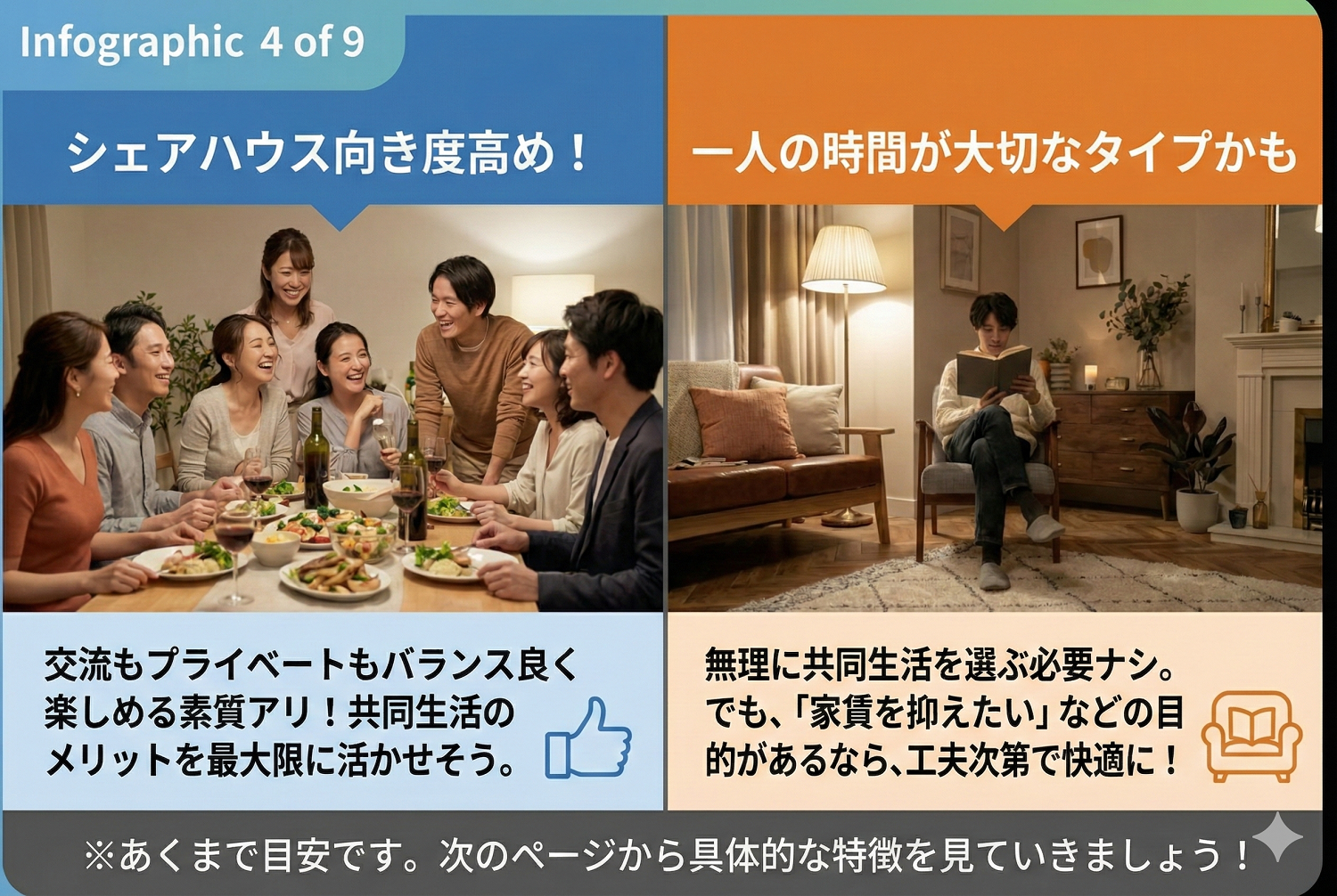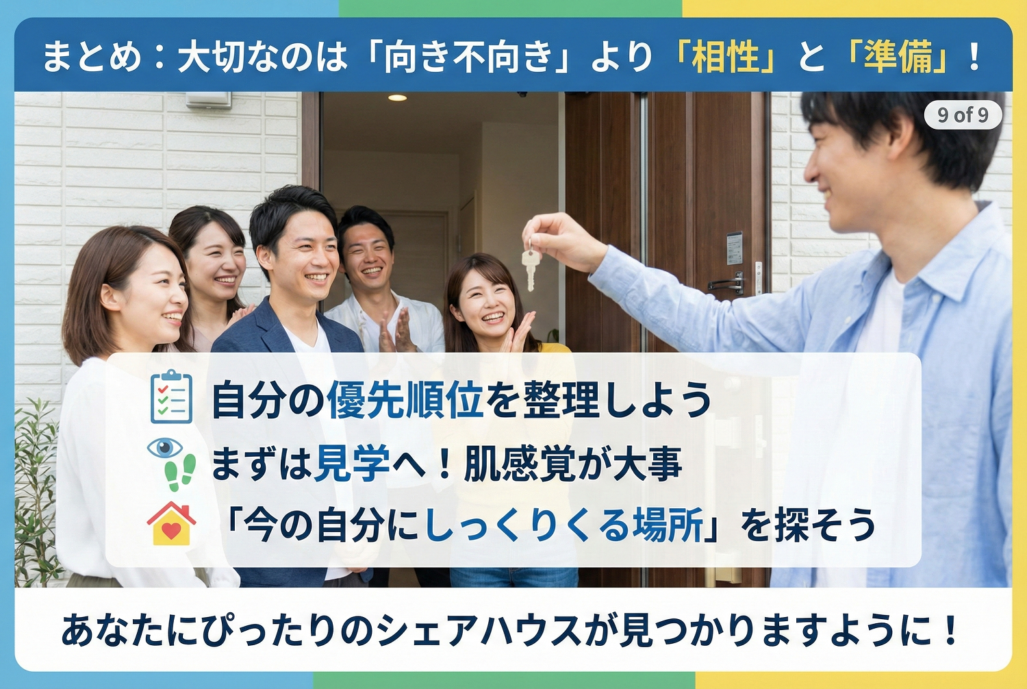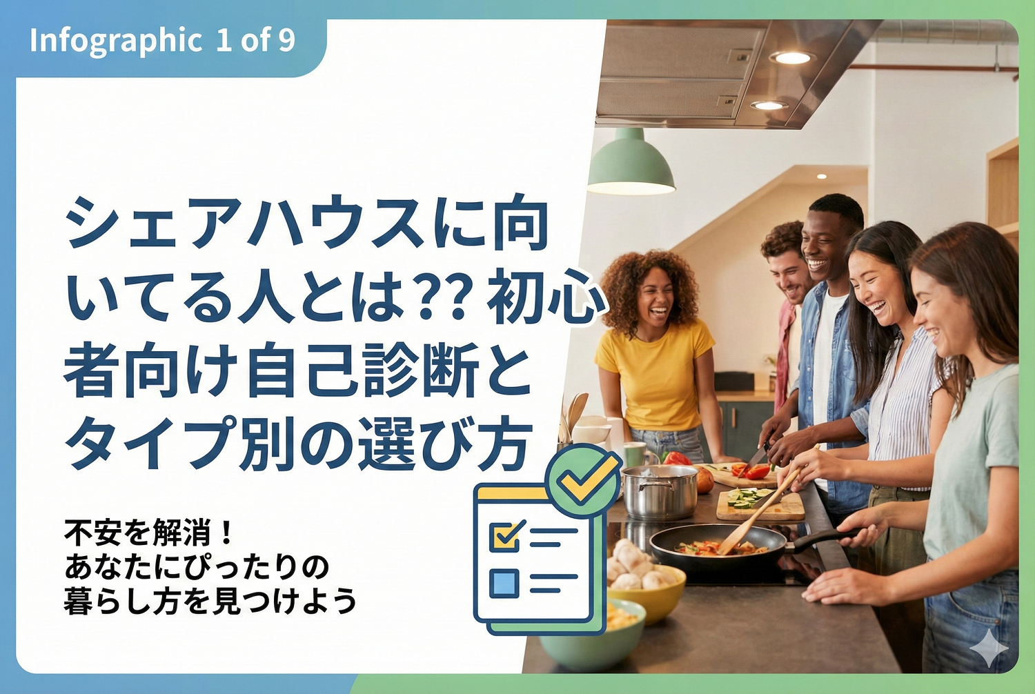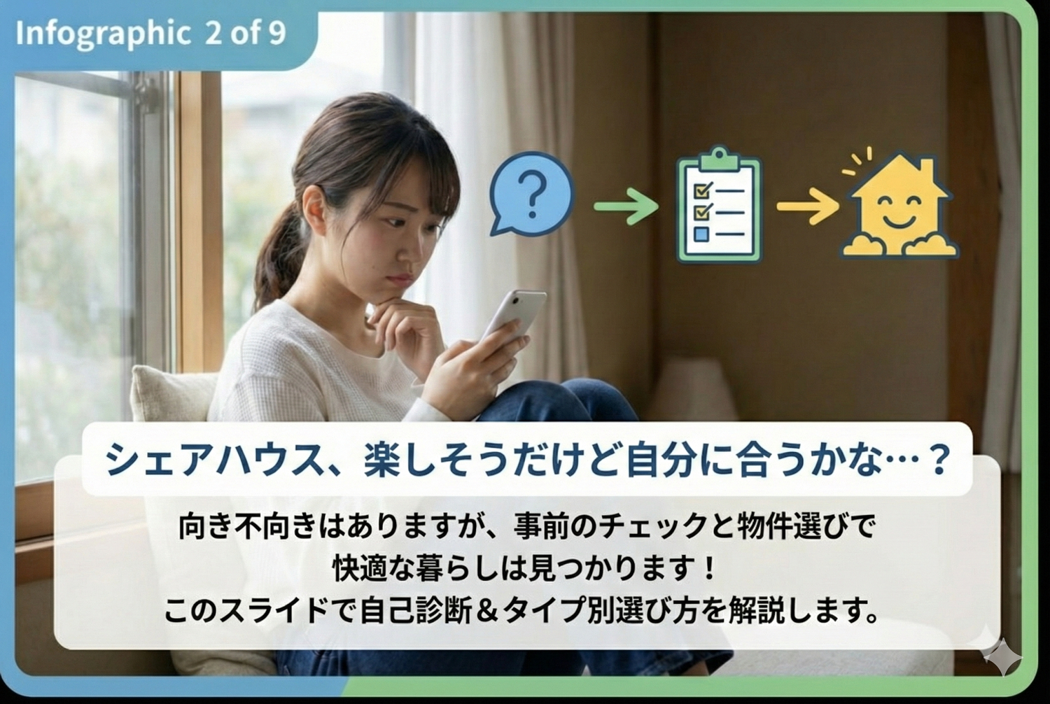 シェアハウスに向いている人とは?初心者向け自己診断とタイプ別の選び方 要約スライド